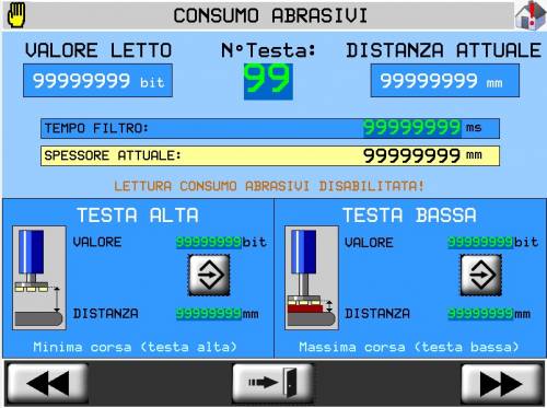 Per abilitare la funzione di controllo spessore abrasivi e altezza lastra impostare il parametro PG 12 e l'opzione “Abilita CTRL abrasivi” ad ON.