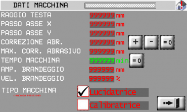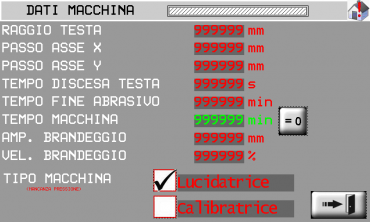 TIPO MACCHINA-Se in setup è impostato LUCIDATRICE-CALIBRATRICE, è possibile selezionare il tipo di macchina.