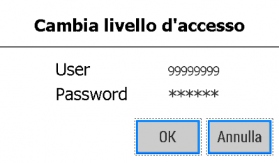 Per tornare al menu di livello Operatore, così da non permettere più il cambio di parametri, basta premere nell'icona di UscitaCambio password
