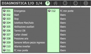 Dopo aver impostato i parametri occorre verificare la funzionalità di ingressi/uscite dalla pagina di diagnostica.