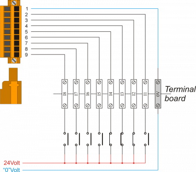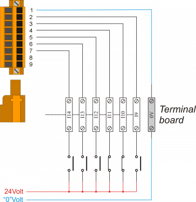 | 1 | 0V | Comune degli ingressi digitali - Collegato internamente allo 0Volt (PIN 3 - CN1) | |||